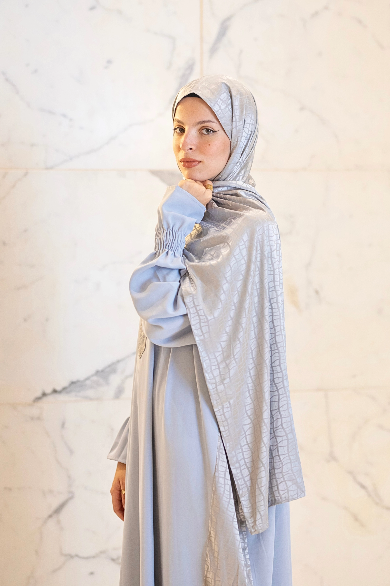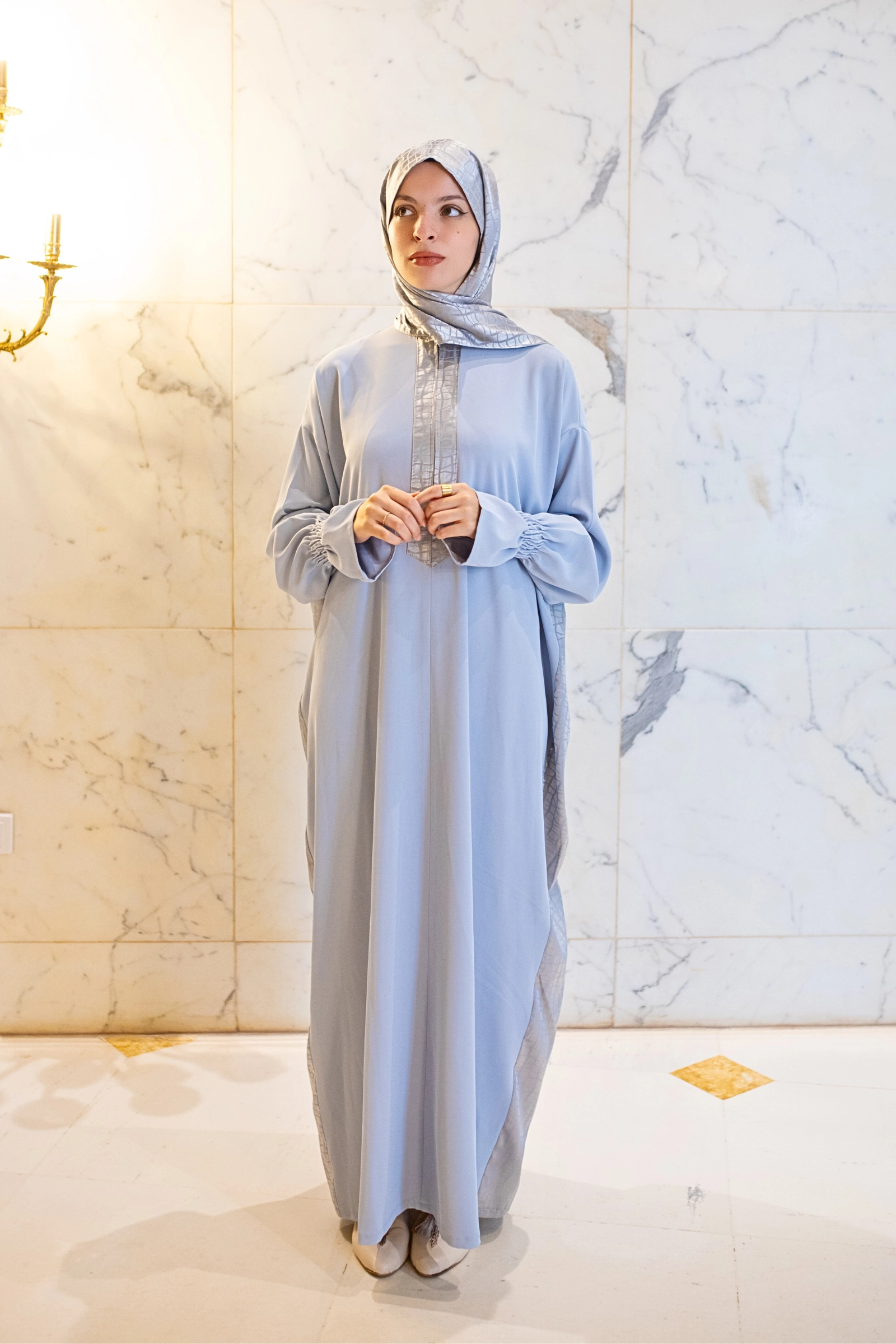 The soft grey color adds a sense of calm and sophistication, making this prayer outfit a timeless essential in your spiritual wardrobe.