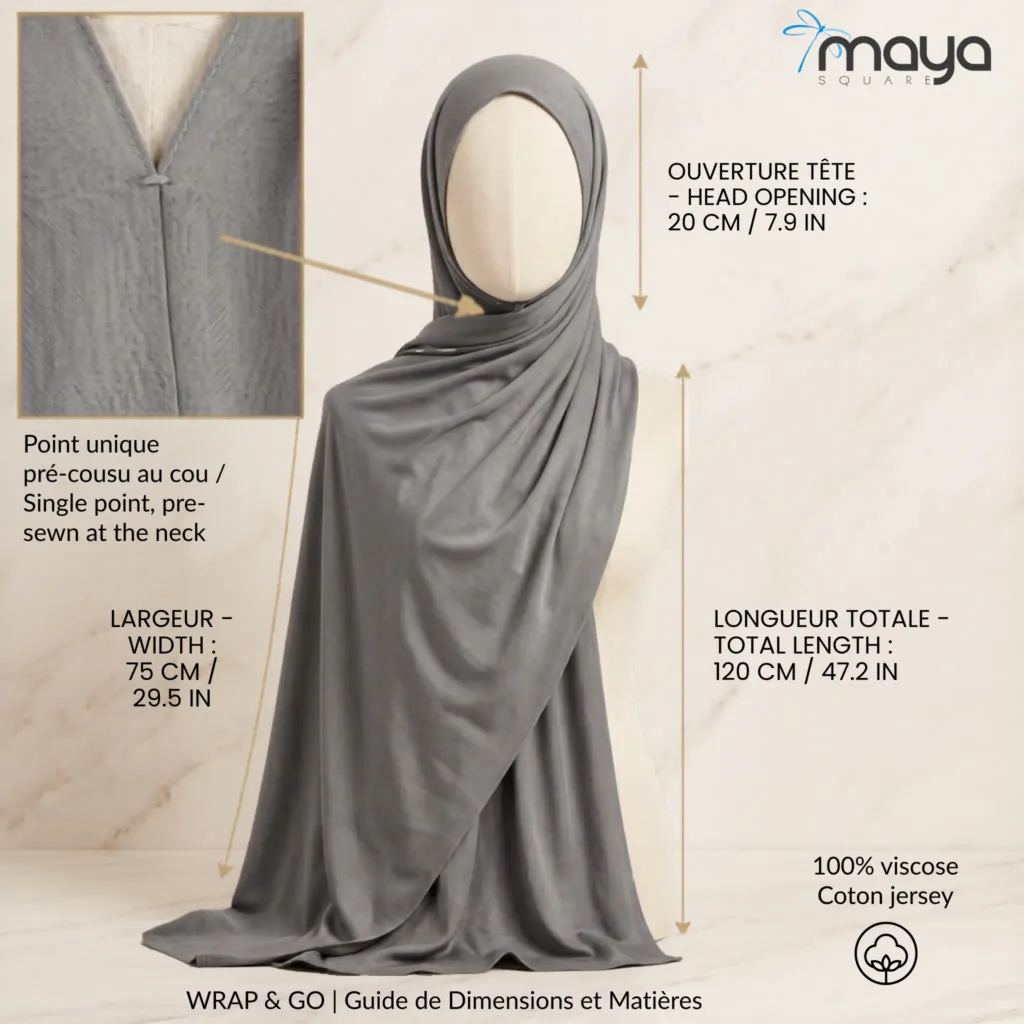 Bid farewell to the complexities of intricate tying! The Wrap & Go model is not only pre-sewn but also ready to wear. Free yourself from time constraints with a hijab that can be worn in a flash, without compromising on elegance.