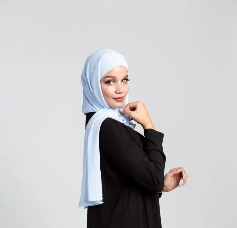 Foulard Foulard Chiffon bleu ciel en crêpe Georgette de très bonne qualité qui ne glisse pas et et se fixe bien avec un bonnet.