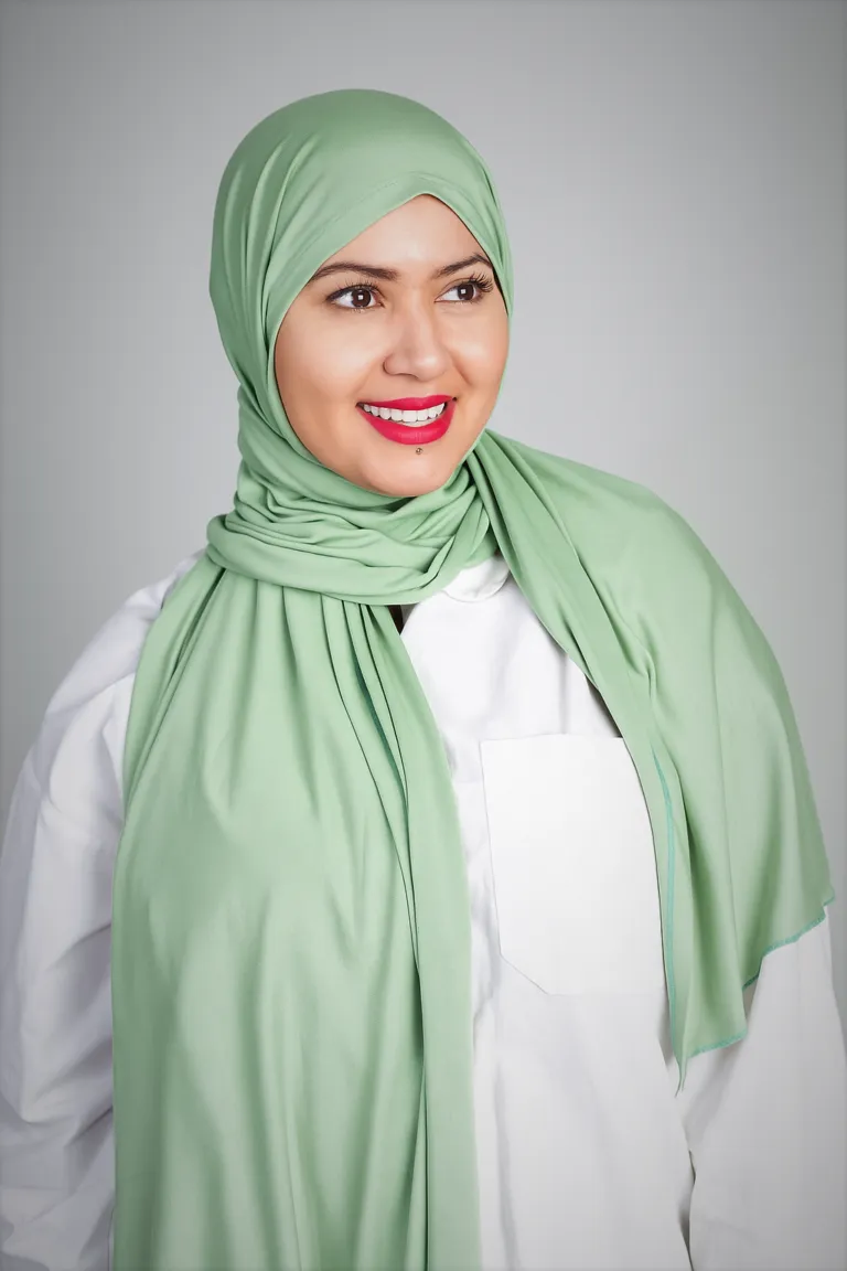 Foulard Jersey Coton vert Amande : L’Élégance et le Confort Réunis pour Femme voilée