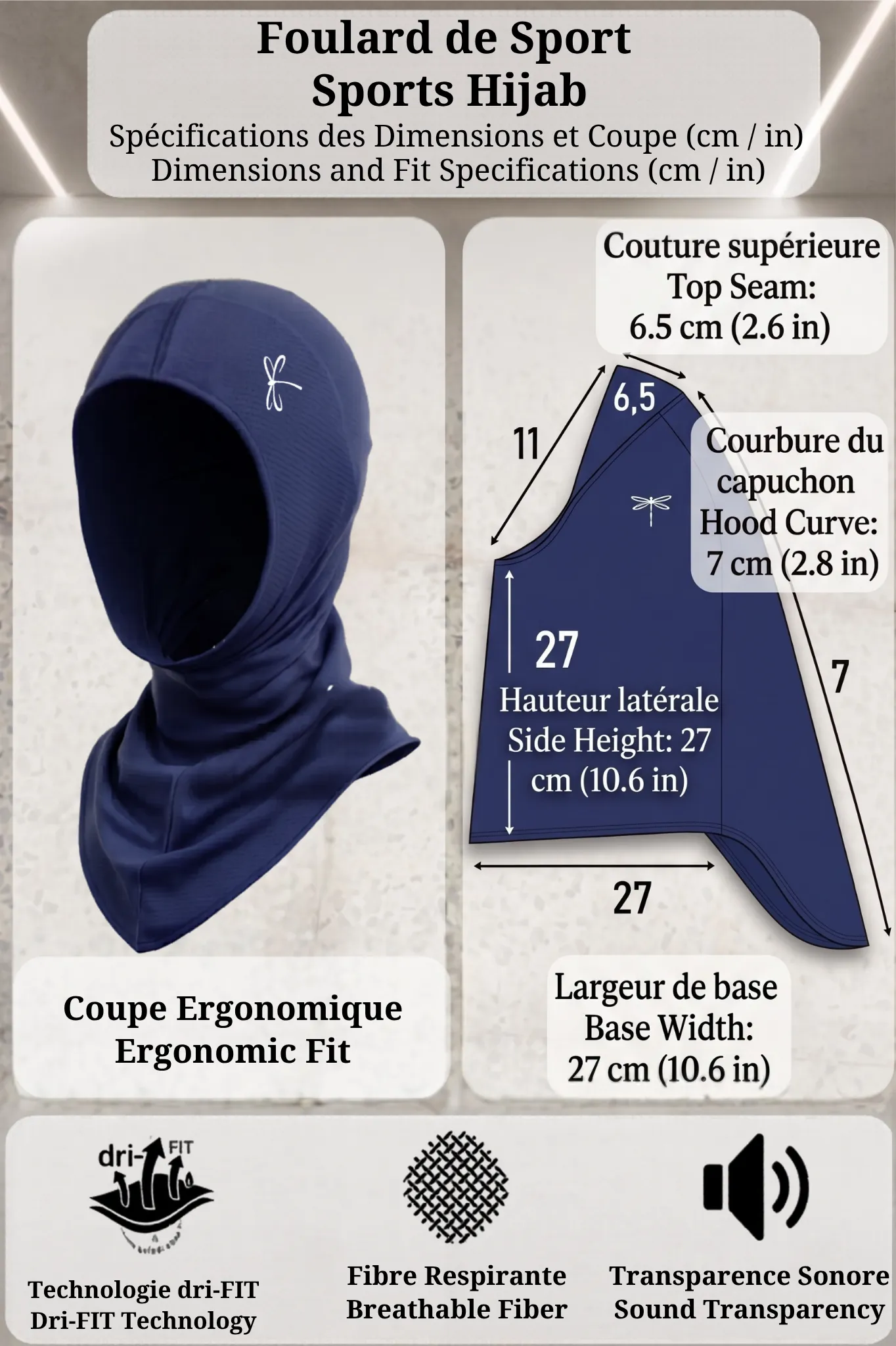 Parfait pour le running, la salle de sport, le volley-ball, le fitness ou les activités extérieures, ce hijab vous permet de rester concentrée sur vos performances avec un confort total.