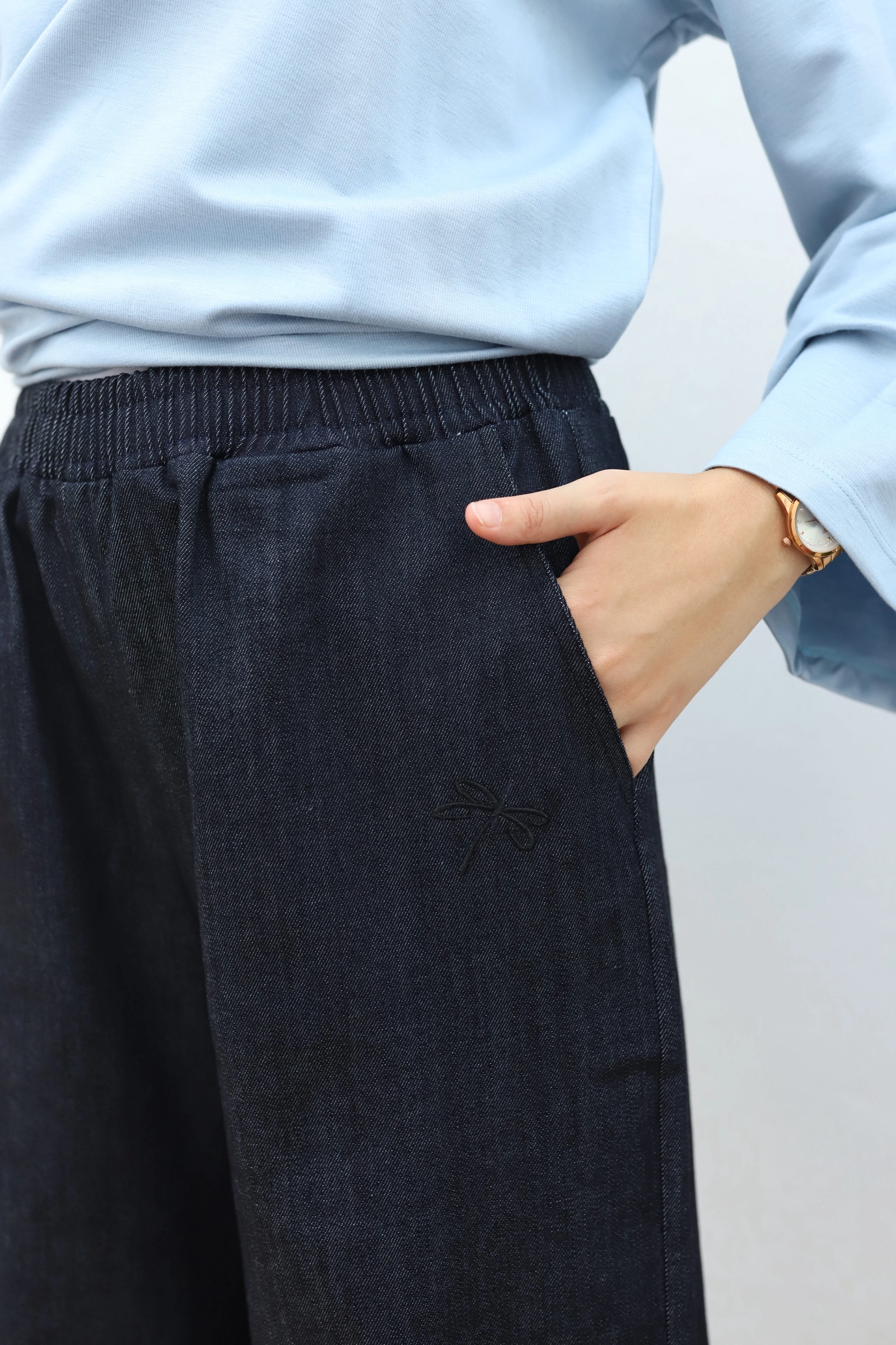 Conçu pour les femmes pudiques en quête d’un look à la fois élégant, fluide et couvrant, ce pantalon bleu à coupe ample sublime toutes les silhouettes sans jamais les mouler.
