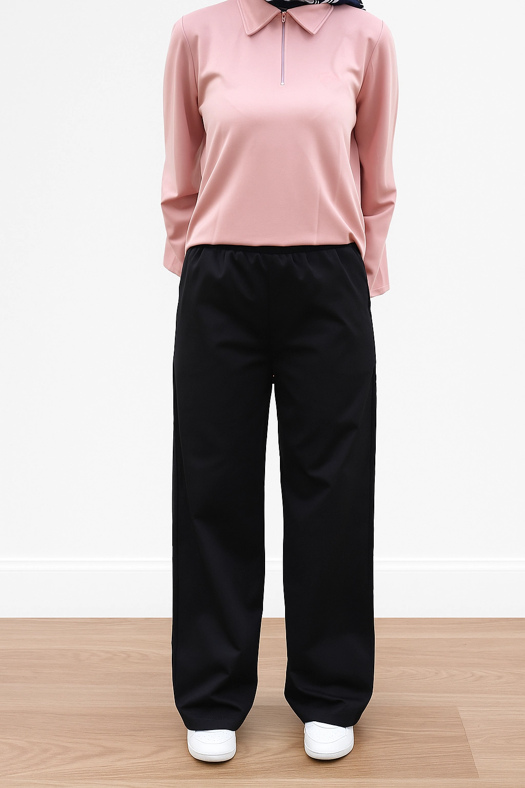 Grâce à sa teinte noire profonde, ce Pantalon Noir Large s’associe facilement à toutes vos tenues : tuniques, pulls longs ou chemises oversize. Son design sobre et raffiné convient parfaitement aux femmes voilées ou à toutes celles qui préfèrent une mode pudique et tendance.