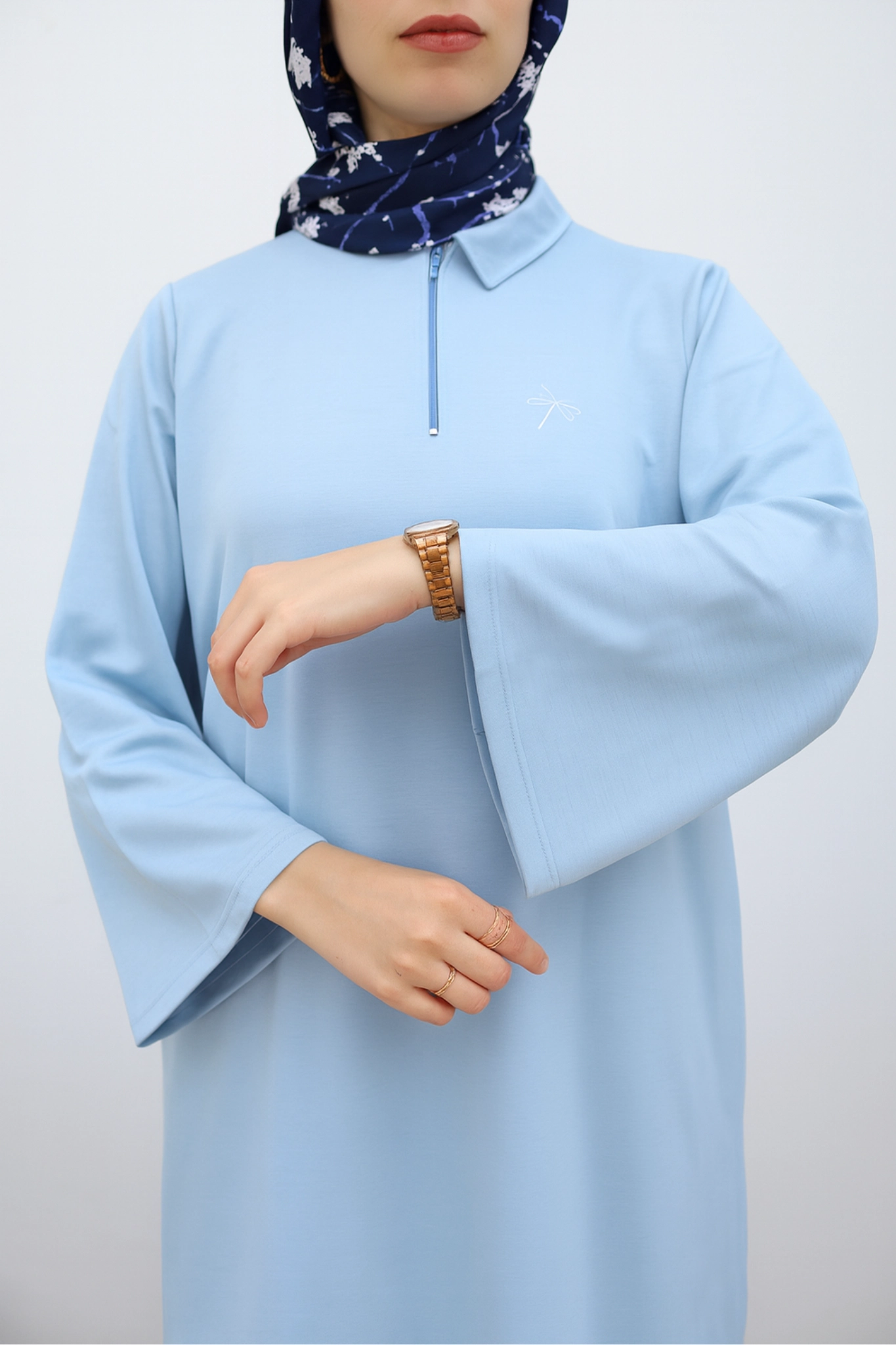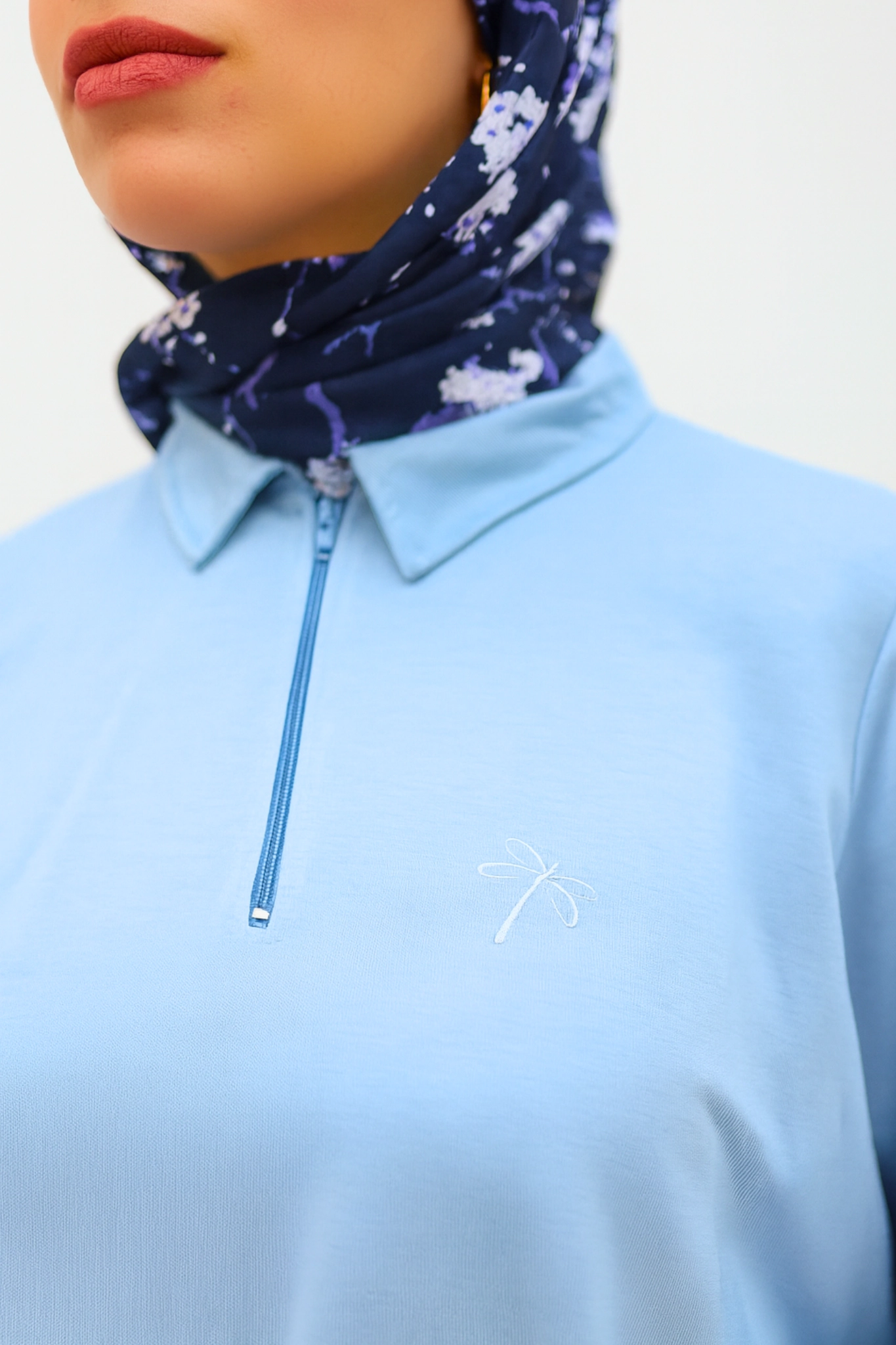 Pull Long Col Chemise avec Zip – MAYA Bleu