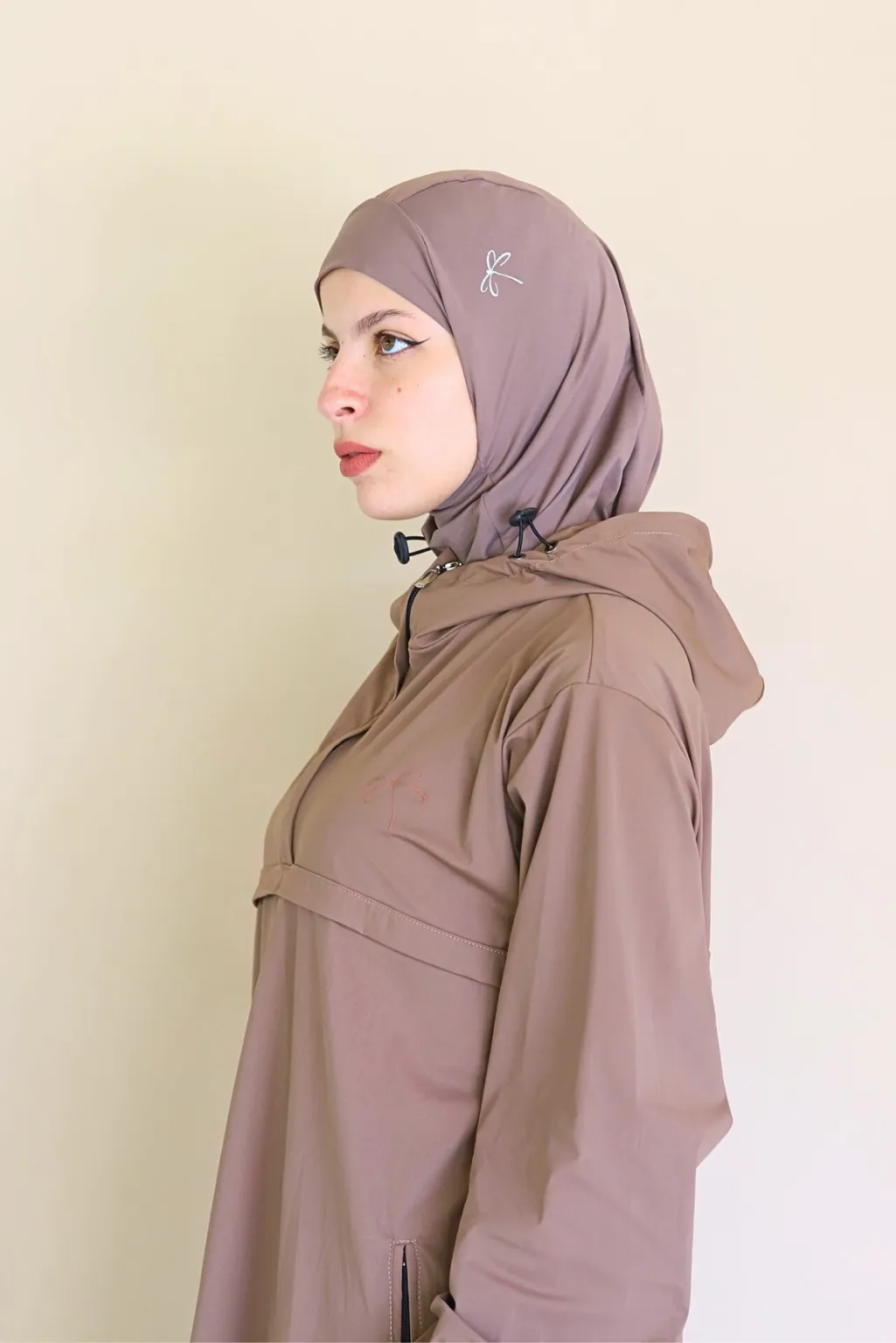 Conçu spécialement pour la femme active et pudique, ce modÚle de la collection Audacieuse se distingue par sa teinte marron claire chaleureuse et son tissu respirant 100 % polyester, idéal pour toutes les saisons.